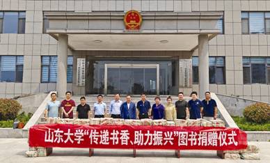 为深入开展学习贯彻习近平新时代中国特色社会主义思想主题教育,落实学校定点帮扶与对口支援工作领导小组办公室相关文件要求,5月17日,图书馆党委书记徐关众带队赴乐陵市郭家街道,开展“传递书香、助力振兴”图书捐赠活动。山东大学省派第一书记周岩、郭家街道党工委书记孙绍鹏等出席活动。 活动中,徐关众代表山东大学向郭家街道捐赠科普、儿童、农业等多个种类图书1200余册。孙绍鹏对山东大学捐赠图书表示感谢,并代表郭家街道向山东大学回赠锦旗。 图书馆将持续深化与乐陵市郭家街道的对接交流,积极开展帮扶工作,以实际行动支持当地乡村振兴。 (文献资源建设中心 赵子豪) |