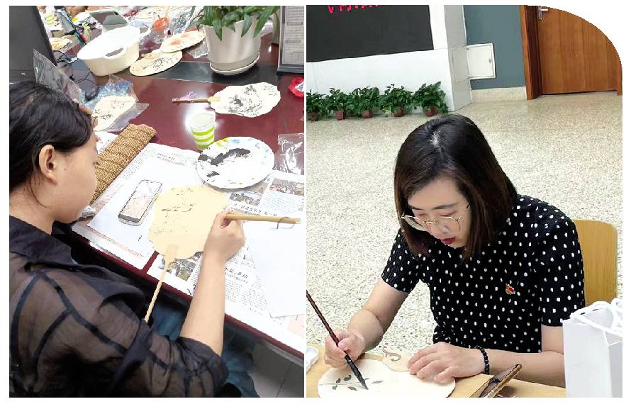 大家完成的作品别具巧思,书画着平安和健康,“目之所及,万千欢喜”、“如意”、“诸事顺遂”,每一把扇子都是绘画者的真挚心意。它们不仅是精美的艺术品,更是感恩的象征,将陪伴老师们度过今年最后的炎热。
